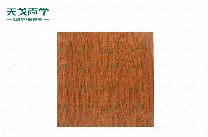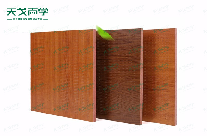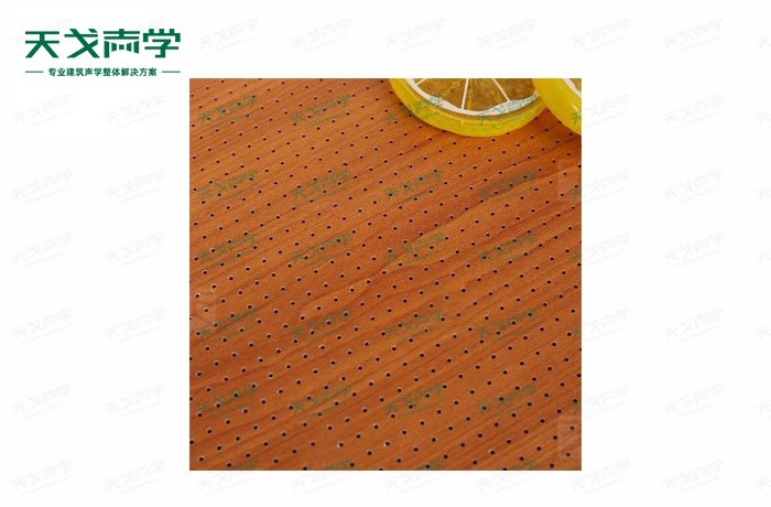 天戈微孔吸音板飾面顏色及材料選擇性廣,孔徑、孔距可根據客戶要求調整,能很好地滿足客戶多樣化的聲學及裝飾需求。孔木吸音板對吸聲頻譜選擇性較強,對中低頻有很好的吸聲性能。如在吸聲結構后空腔上填入適量的吸聲棉可提高中、高頻吸聲效果。
