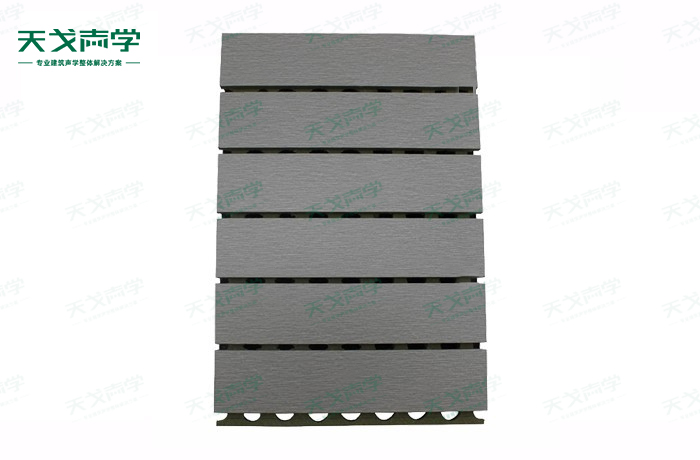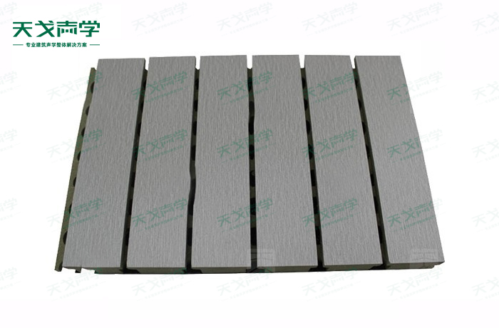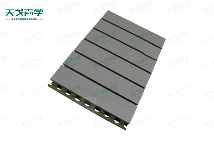 天戈籃球館槽木吸音板是一種在密度板的正面開槽、背面穿孔的狹縫共振吸音材料。槽木吸音板對吸聲頻譜選擇性很強,對中低頻有很好的吸聲性能。若在吸聲結構后空腔填入適量的吸聲棉可提高中、高頻吸聲效果,標準化模塊設計,采用插槽、龍骨結構,安裝簡易,可用于籃球館墻面或天花裝飾。