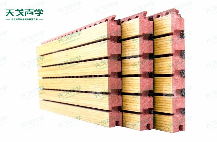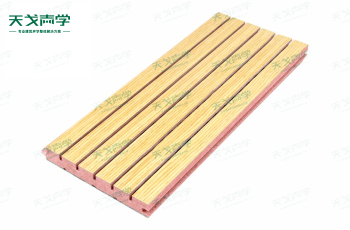 天戈防火槽木吸音板是一種在密度板的正面開槽、背面穿孔的狹縫共振吸音材料。防火槽木吸音板對吸聲頻譜選擇性很強(qiáng),對中低頻有很好的吸聲性能。若在吸聲結(jié)構(gòu)后空腔填入適量的吸聲棉可提高中、高頻吸聲效果,標(biāo)準(zhǔn)化模塊設(shè)計(jì),采用插槽、龍骨結(jié)構(gòu),安裝簡易,常用于墻面或天花裝飾。