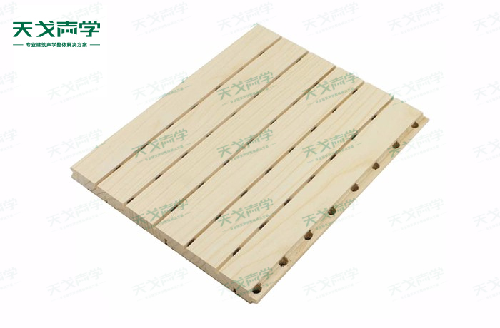天戈教室槽木吸音板是一種在密度板的正面開槽、背面穿孔的狹縫共振吸音材料。槽木吸音板對吸聲頻譜選擇性很強,對中低頻有很好的吸聲性能。若在吸聲結構后空腔填入適量的吸聲棉可提高中、高頻吸聲效果,標準化模塊設計,采用插槽、龍骨結構,安裝簡易,常用于墻面或天花裝飾。