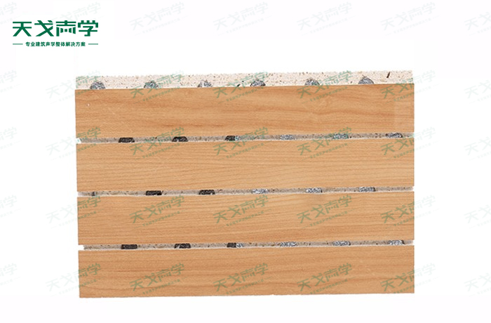 天戈防火玻鎂吸音板是一種在密度板的正面開槽、背面穿孔的狹縫共振吸音材料。玻鎂吸音板對吸聲頻譜選擇性很強,對中低頻有很好的吸聲性能。若在吸聲結構后空腔填入適量的吸聲棉可提高中、高頻吸聲效果,標準化模塊設計,采用插槽、龍骨結構,安裝簡易,常用于墻面或天花裝飾。