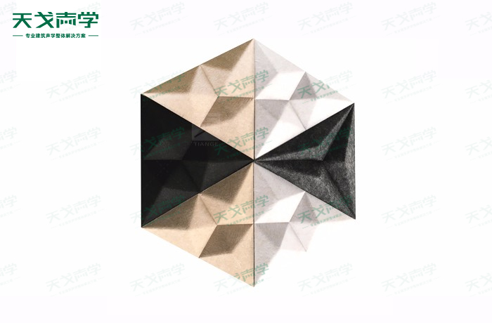 天戈3D藝術吸音板基材采用聚酯纖維經高溫技術熱壓并以繭棉形狀組成,孔隙率到達85%以上,在中高頻范圍內具有良好的吸音性能,且達國家B1級防火要求,廣泛用于學校、音樂廳、劇院、電影院、酒店、酒吧、書房、舞蹈室等活動場所。