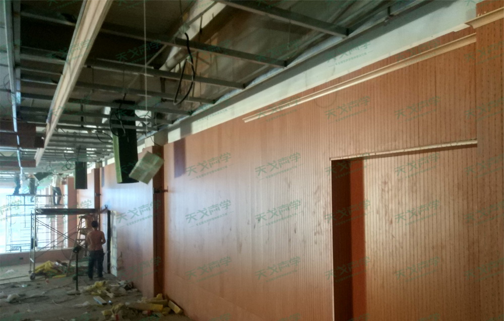 天戈聲學對哈吉動力科技股份有限公司千人會議室項目的聲學建設進行了全方位、深層次的考量。從材料的精心挑選到施工的嚴格把控,每一個環節都力求做到盡善盡美。最終,該項目呈現出的效果令人矚目,既充分考慮了實際聲學效果,有效解決了會議室可能存在的聲學問題,又達到了裝飾的美觀性要求,使會議室在滿足功能需求的同時,成為了一個兼具藝術美感的空間。在這里,參會者能夠享受到專業的聽覺感受和完美的聲光效果,為高效、舒適的會議體驗提供了有力保障。