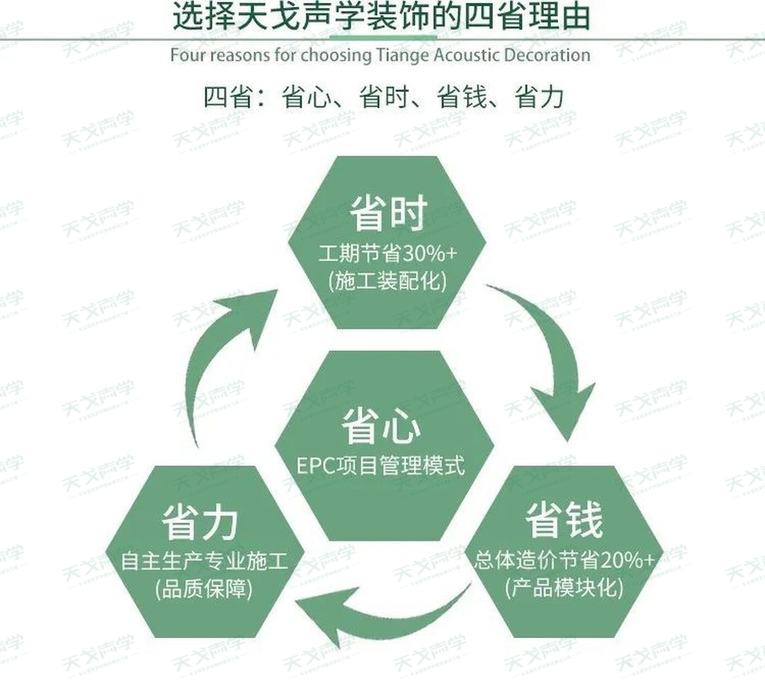 在天戈聲學EPC項目管理模式下,自身強大的產品自主生產能力、裝配式施工模式、產品模塊化的情況下能夠為客戶提供優質的四省服務——既省心、省力、省時、省錢。