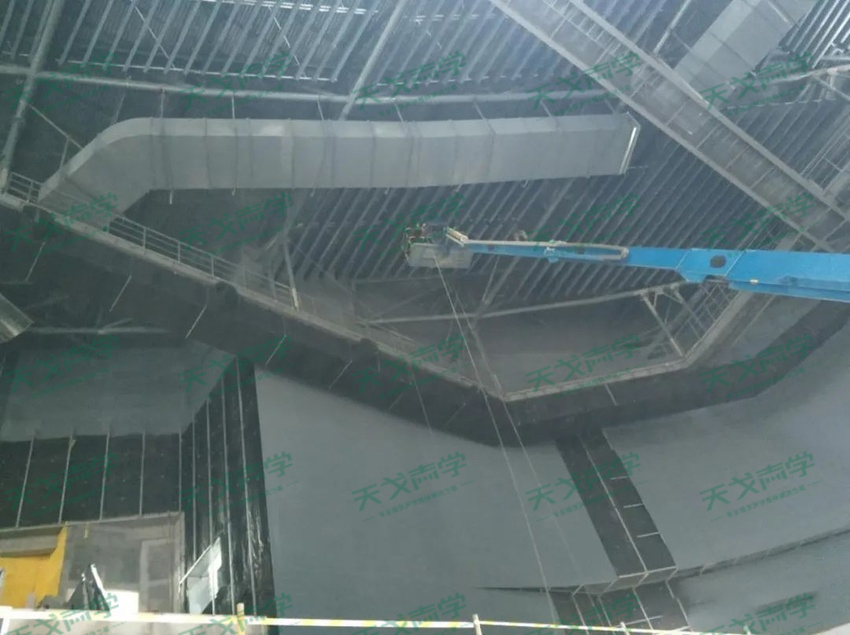 安康體育館使用了天戈自主研發生產的多種聲學材料。由于場館的建筑結構特殊,在施工的過程中難度非常大,同時客戶對于材料的要求也非常高。這些都給我們增加了巨大的難度。