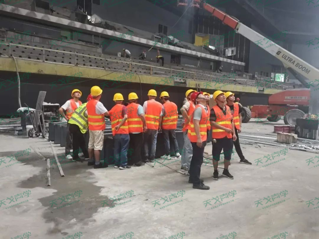 但是天戈從來都是不懼挑戰、迎難而上的。雖然施工難度大、材料的技術要求高,但是在天戈產品技術人員的全力配合下順利的完成了材料的生產、運輸,保證了施工的正常進度。同時在我們專業的聲學裝飾施工團隊的緊密配合下順利的完成安康體育館的整個聲學裝飾工程。