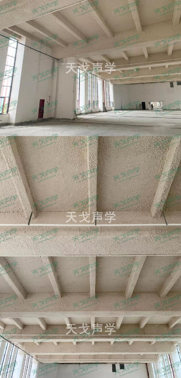 通過噴涂在頂棚上可以吸收一部分入射聲音,從而大大降低體育館內的噪聲,對改善場館內的語言清晰度起到良好的作用。