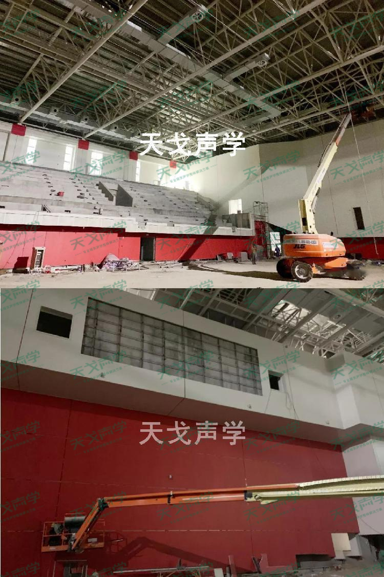 值得一提的是,綜合考慮項目實際情況,天戈聲學最終選用的材料包括無機纖維吸音噴涂,這款吸音材料具有優良的保溫(絕熱)性能、良好的吸聲和隔聲性能、較好的防火性能、復雜結構的高適應性以及較高的安全環保性能等優勢特點,經安裝施工后,從外觀上看也是簡潔美觀,非常適用于體育館和訓練館這類場所。