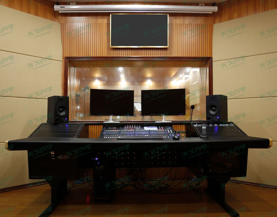 根據貴司的要求可知,對該錄音棚的要求非常嚴格,是該公司核心主打場所之一,天戈聲學團隊對該項目高度重視,成立專門小組進行專業的聲場檢測、聲學設計、裝飾設計,對錄音棚的吸音、隔音、聲場擴散、燈光效果等全面考慮,聲學材料方面采用了天戈聲學自主生產的吸聲系數高的吸聲模塊、槽孔吸音板、聲學反射板、錐形擴散體、QRD擴散體、阻尼隔音板、隔音氈等;該項目建聲的亮點是,我們采用了先進的聲學模擬軟件進行前期模擬,確保了項目的效果達成。