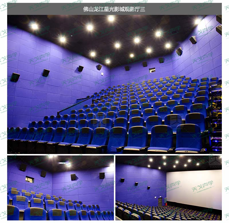 佛山龍江星光影城坐落于龍江鎮,為中影南方新干線加盟影院。影院共有四個觀影廳,可同時容納觀眾近400人。全新升級改造后,可同步放映全國首映新片。影院配備2K BARCO 高清數字放映設備,同時引進全新3D放映系統,可同步放映全新精彩3D大片。