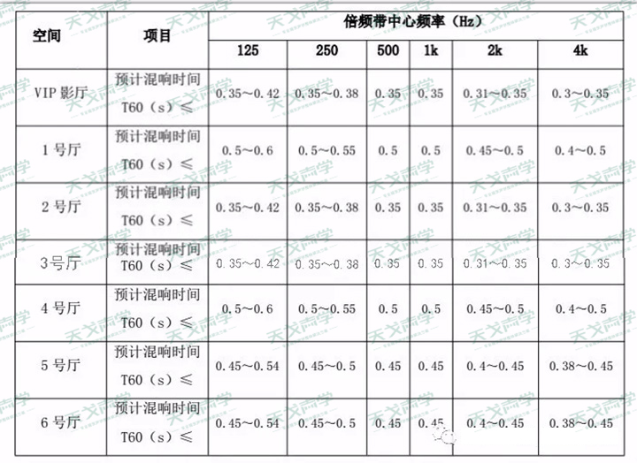 6、工程實施后聲環境及場內環境適宜,混響時間為: