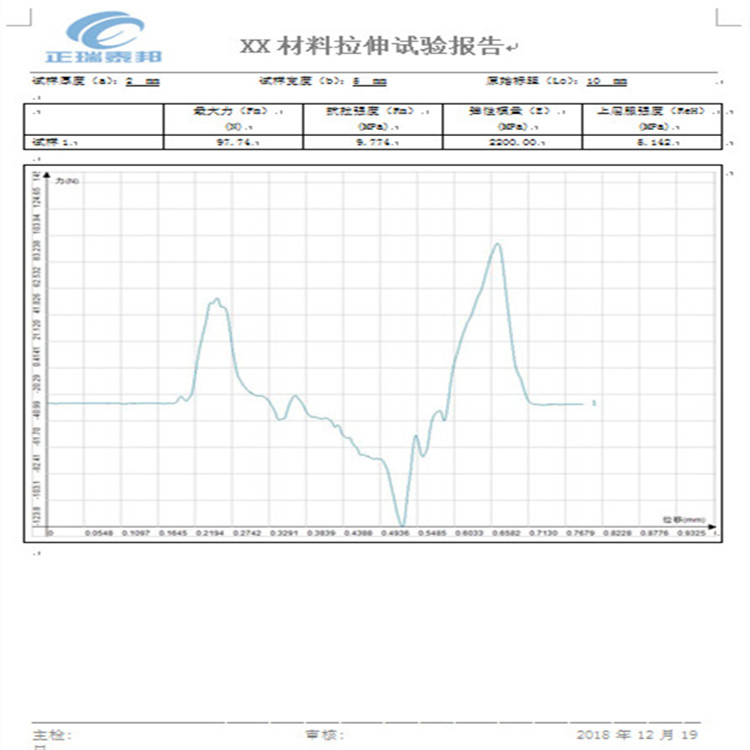 完全開放的試驗方法編輯界面,力-時間、力-位移、位移-時間、抗拉強度-時間、伸長率-時間、應力-應變等曲線圖可任意切換;自動求算拉力、抗拉強度、屈服強度、伸長率、彈性模量、彎曲模量等指標,試驗報告可導入Word或Excel,多次試驗結果可同時展現,一張報表可展現多條試驗曲線,便于用戶對比。